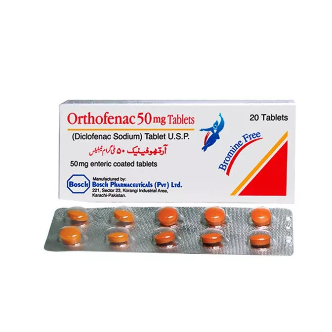 ORTHOFENAC 50mg Tablet 2x10s is used to relieve pain and swelling associated with the tissue connecting the muscle and bones.