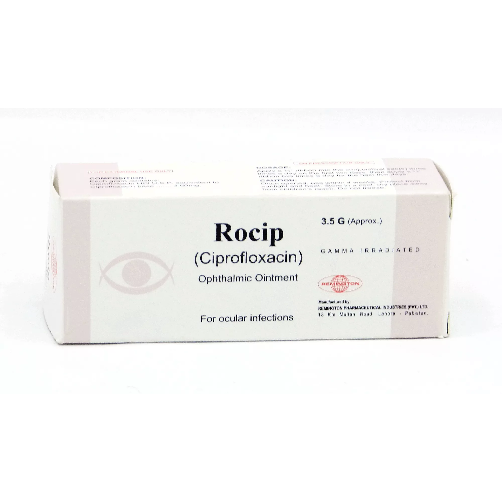 Rocip Eye 0.30% Eye Oint 3.5 gm is used in the treatment of Pneumonia with Cystic Fibrosis (an inherited disease that causes thick mucus to build up in the lungs and promotes the growth of bacteria like Staphylococcus aureus and Hemophilus influenzae).