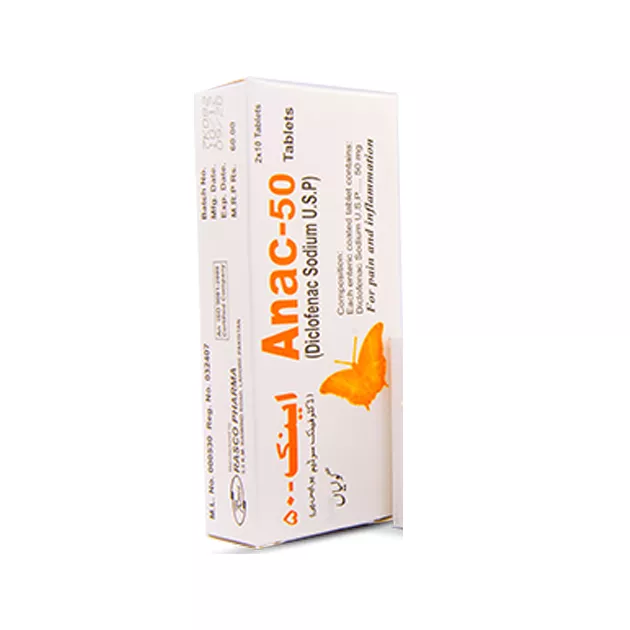 Anac tablet 50 mg 2×10’s is used to relieve pain and swelling associated with the tissue connecting the muscle and bones.