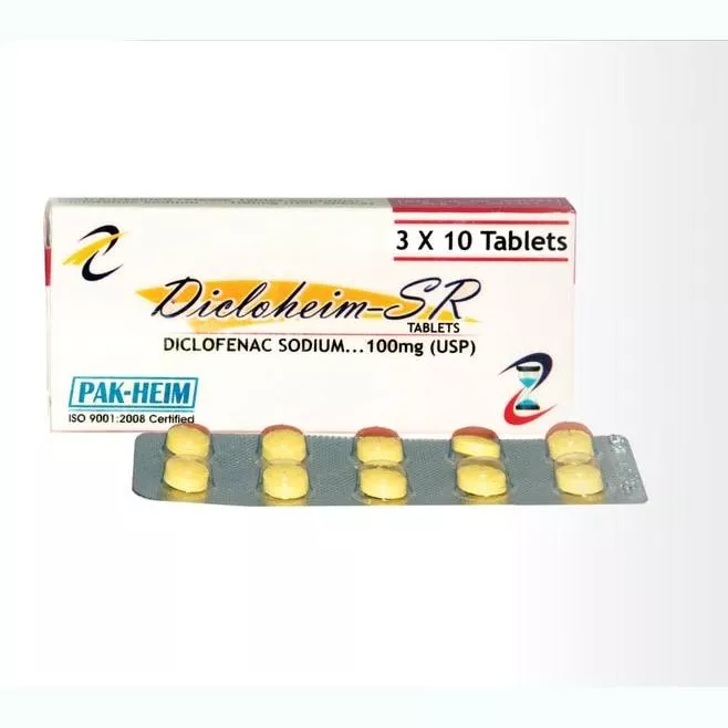 Dicloheim SR tablet 100 mg 3×10’s is used to relieve swelling and pain in joints caused by the inflammation of the bursae.