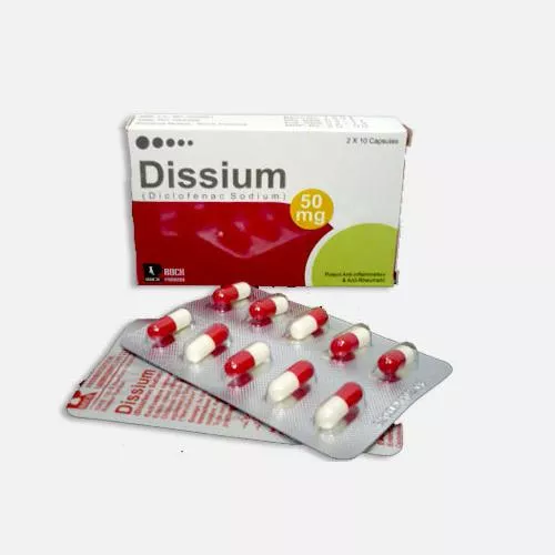 Dissium capsule 50 mg 2×10’s is used to relieve pain and swelling associated with the tissue connecting the muscle and bones.