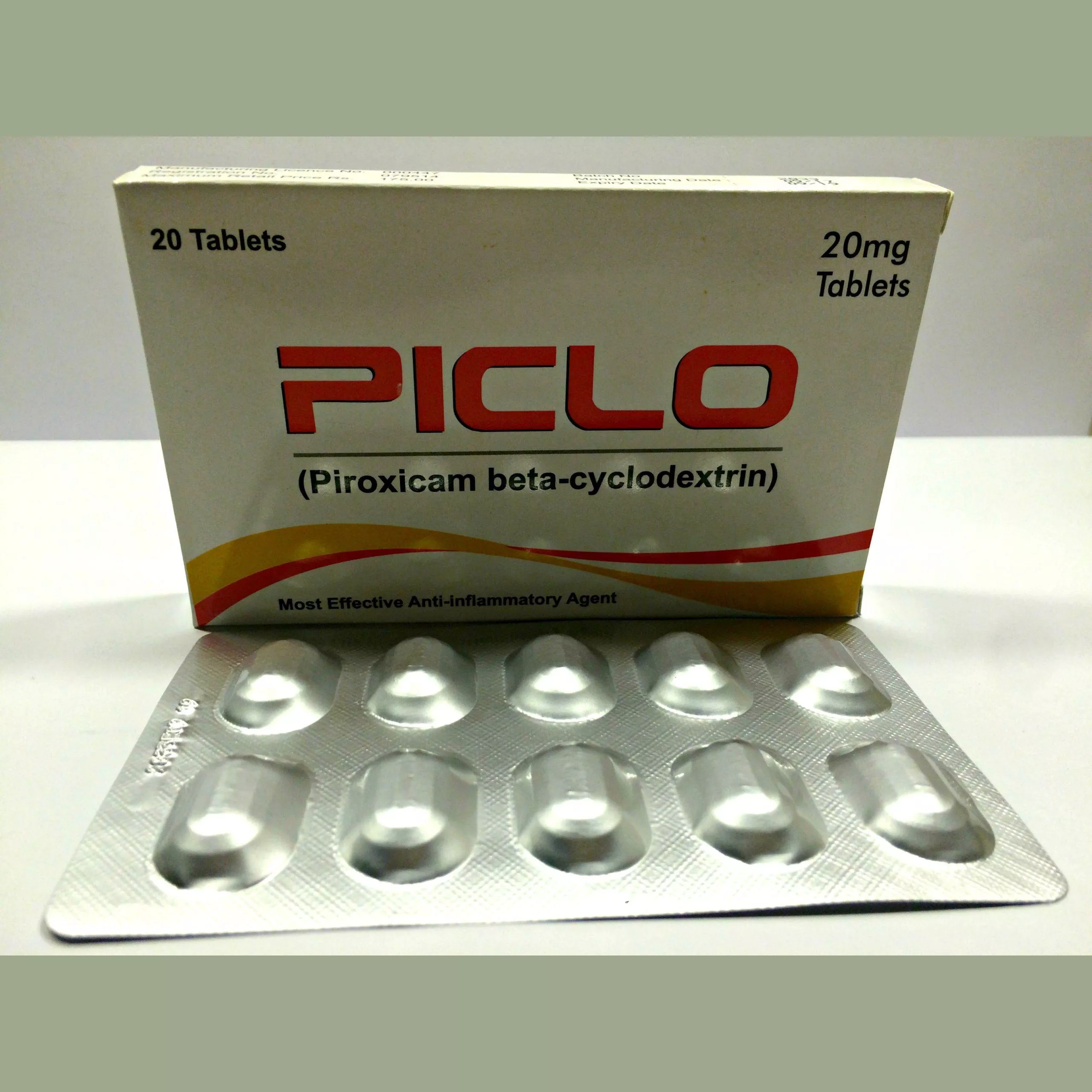 Piclo tablet 20 mg 2×10’s is used to relieve symptoms of pain and inflammation in rheumatoid arthritis patients.
