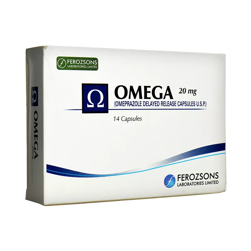 Omega capsule 20 mg 2×7’s is used in the treatment of GERD (a condition where stomach acid and contents flow back and irritate the food pipe).
