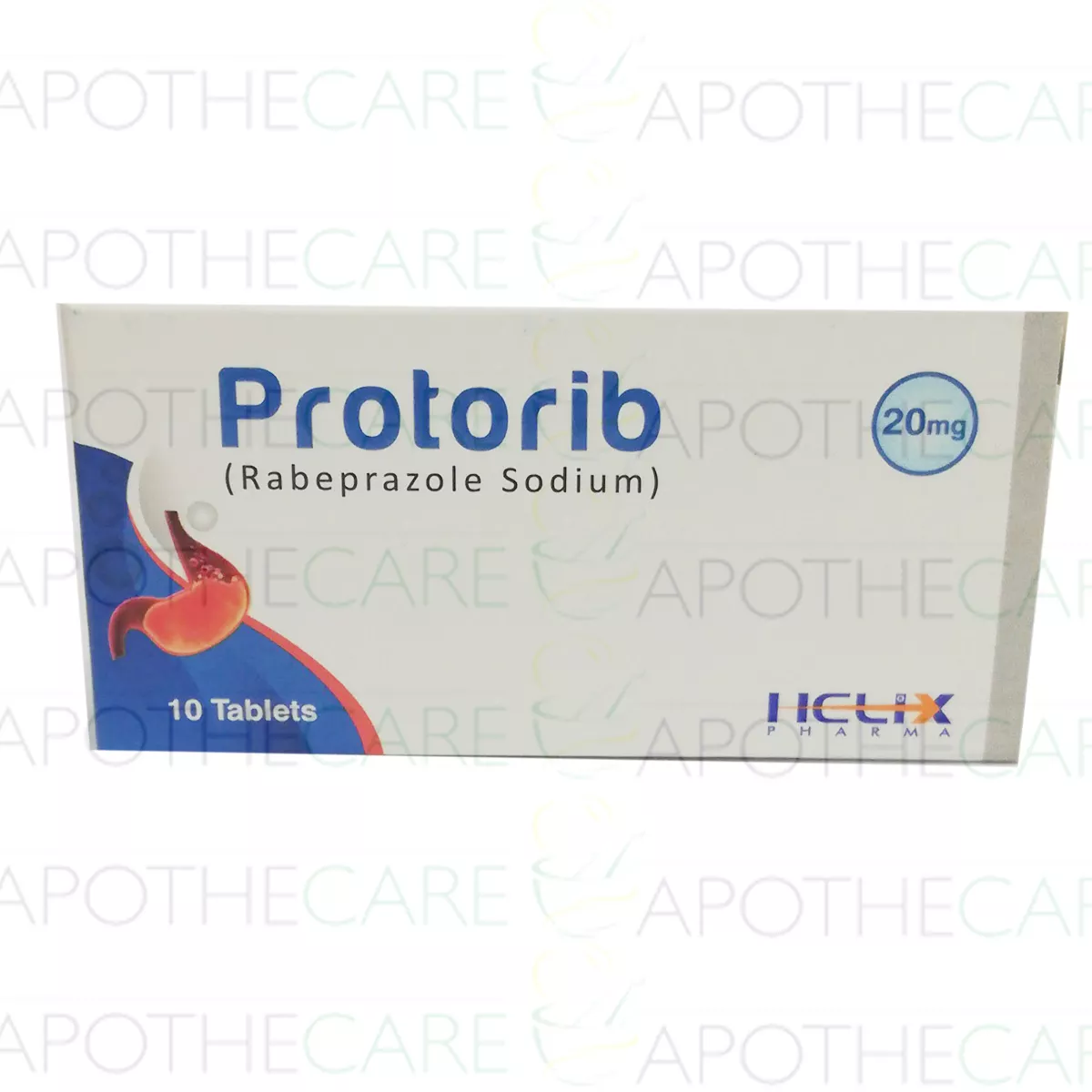 Protorib tablet 20 mg 10’s is used in the treatment of a reflux disease where acid from the stomach and bile irritates the food pipe.