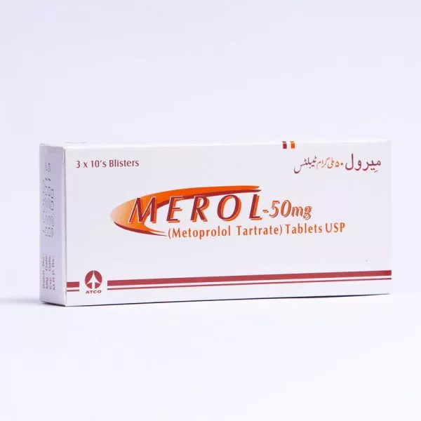 Merol tablet 50 mg 3×10’s is not recommended for people who have a known history of allergy to this medication or any other medicines belonging to the group Beta Blockers. (Eg: Atenolol, Labetalol etc).