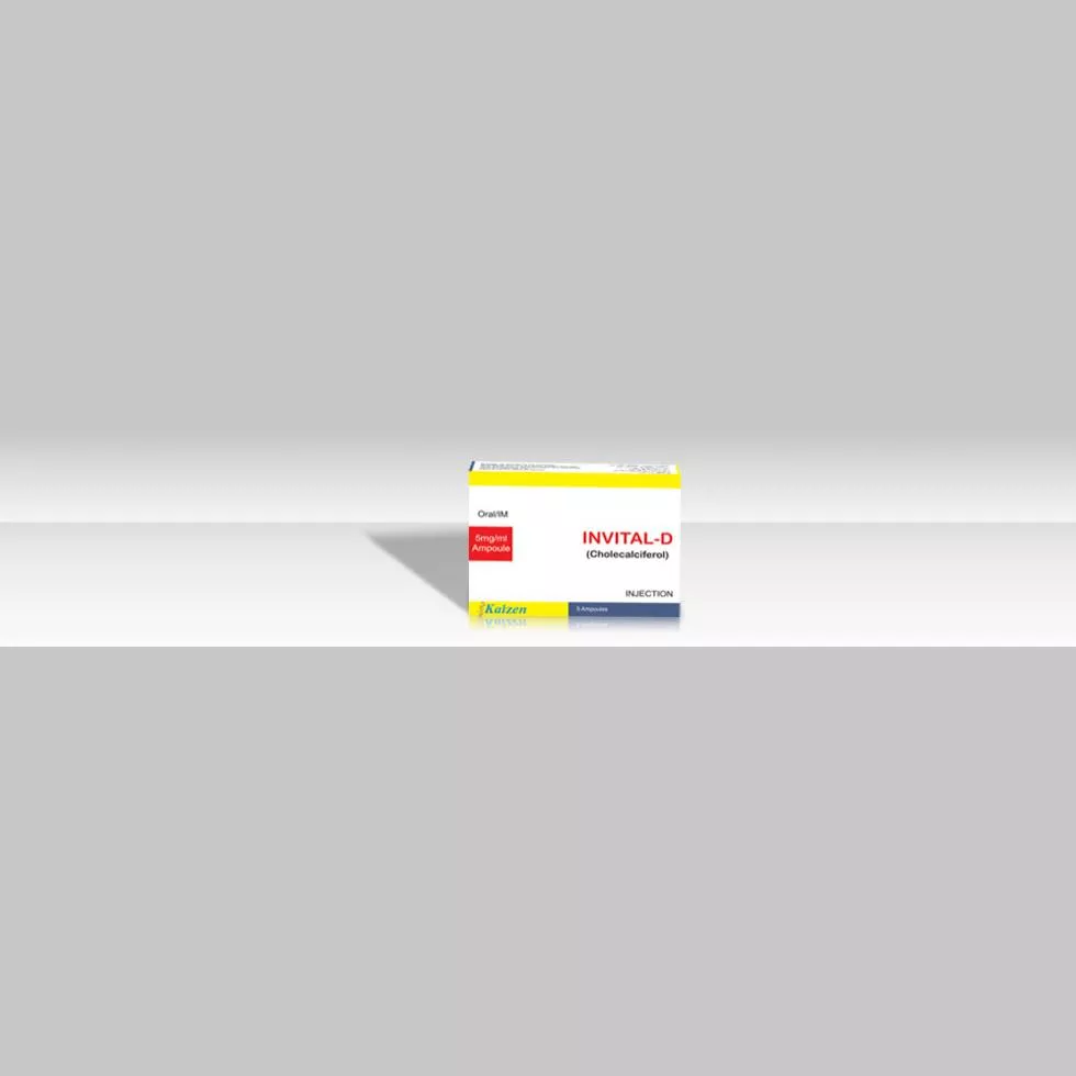 Invital-D Injection 5 mg 5 Amp is used treat Vitamin D Resistant Rickets by meeting the calcium requirements of the body.