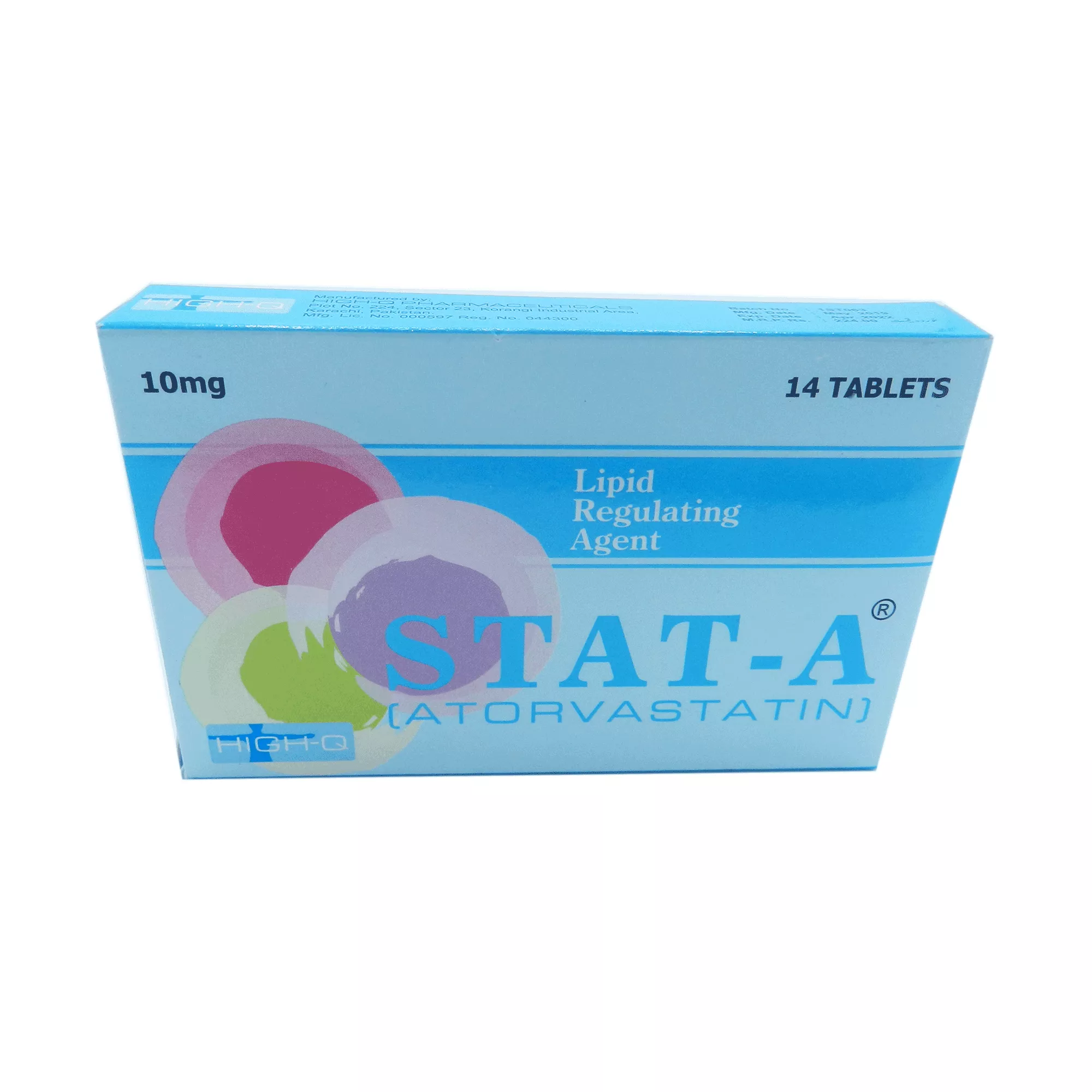 Stat-A tablet 10 mg 14’s is used to reduce high levels of LDL cholesterol and triglycerides in the blood (main constituents of body fat in humans and other animals, as well as vegetable fat). It also increases the levels of high density cholesterol.