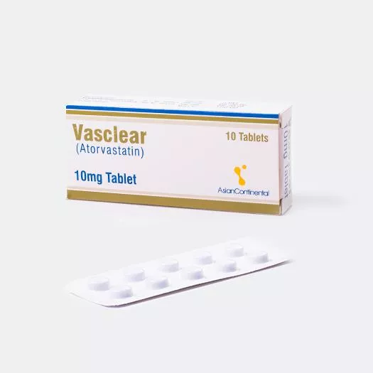 Vasclear tablet 10 mg 10’s is used to reduce high levels of LDL cholesterol and triglycerides in the blood (main constituents of body fat in humans and other animals, as well as vegetable fat). It also increases the levels of high density cholesterol.
