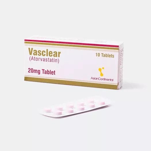 Vasclear tablet 20 mg 10’s is used to reduce high levels of LDL cholesterol and triglycerides in the blood (main constituents of body fat in humans and other animals, as well as vegetable fat). It also increases the levels of high density cholesterol.