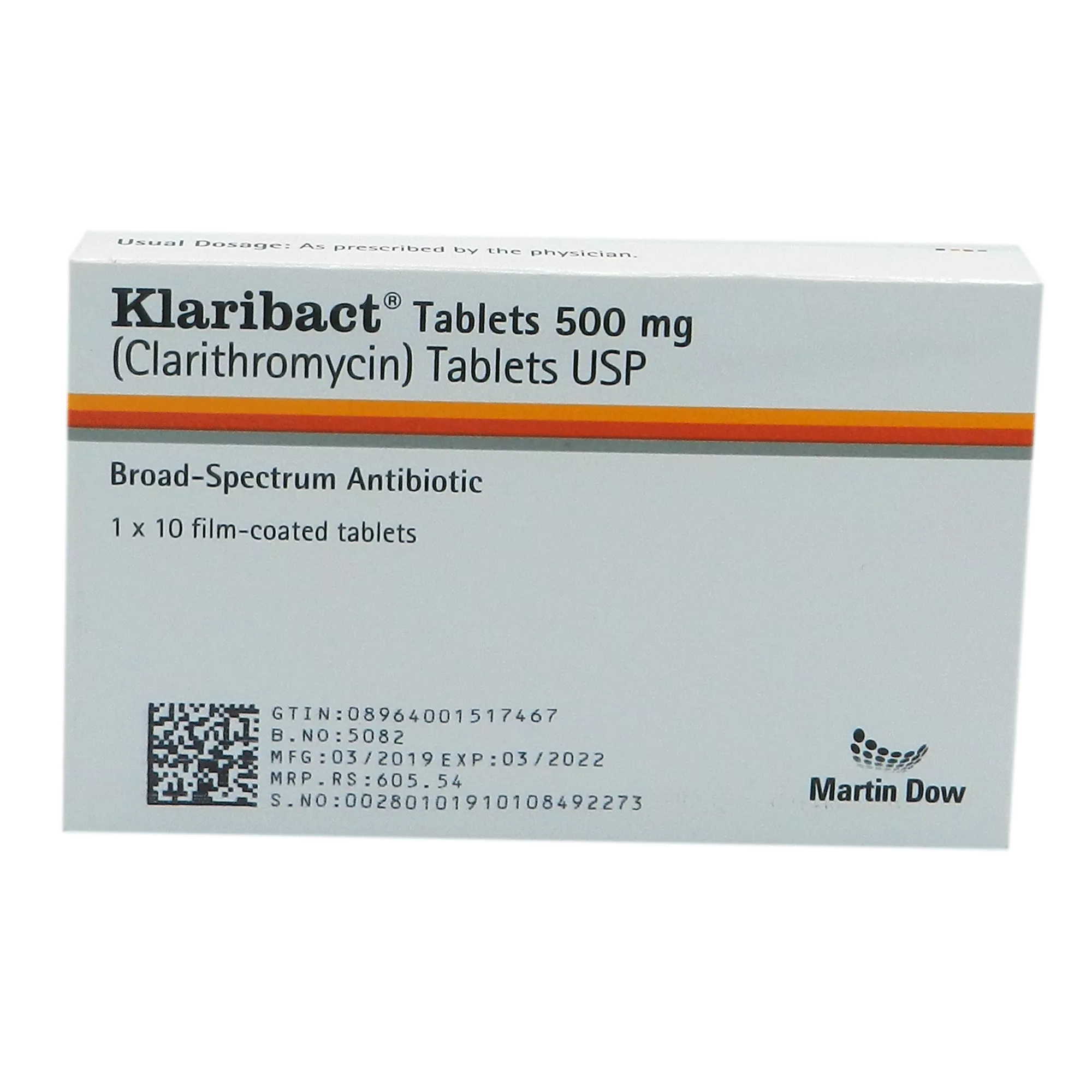 Klaribact tablet 500 mg 10’s is used in the treatment of Tonsilitis/Pharyngitis caused by Streptococcus pneumoniae, Haemophillus influenzae and some fungal infections.