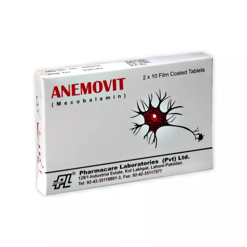 Anemovit tablet 500 mcg 20’s is used to relieve the symptoms of nerve damage in the feet and hand.