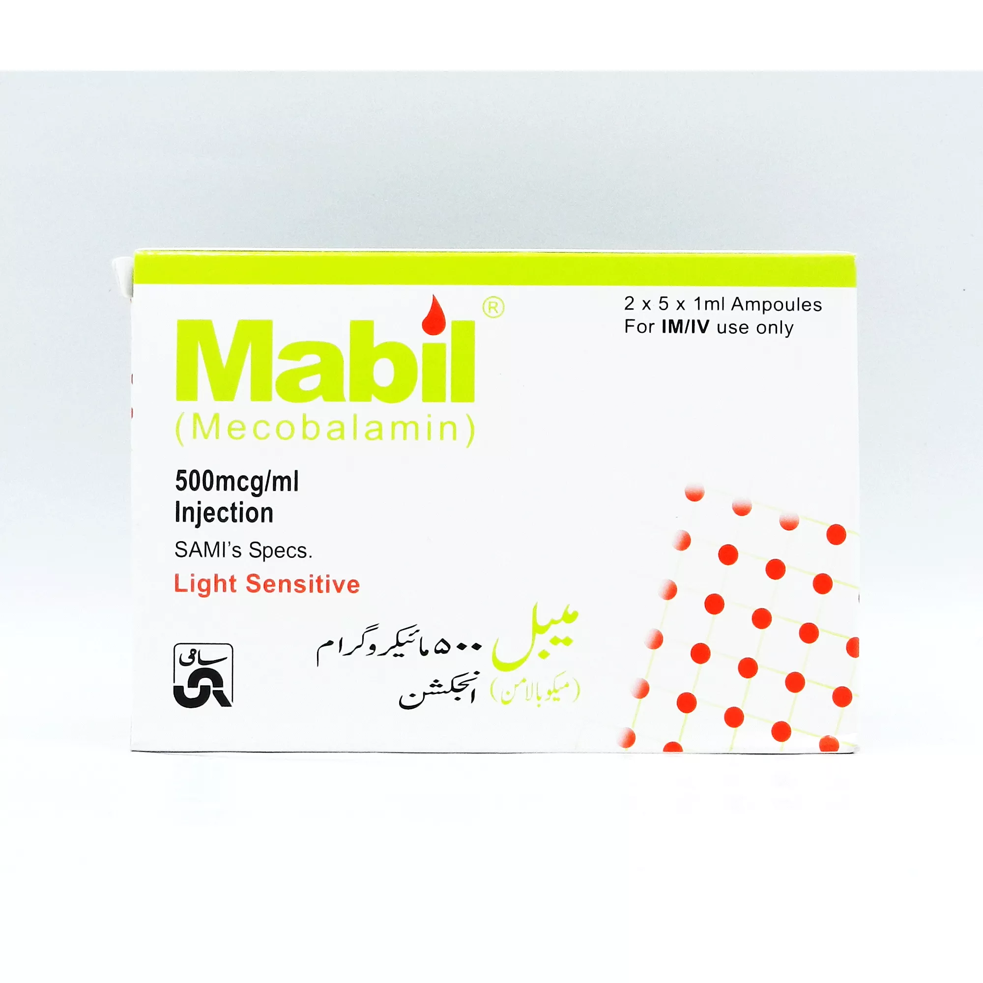 Mabil Injection 500 mcg 10 Amp is used to relieve the symptoms of nerve damage in the feet and hand.