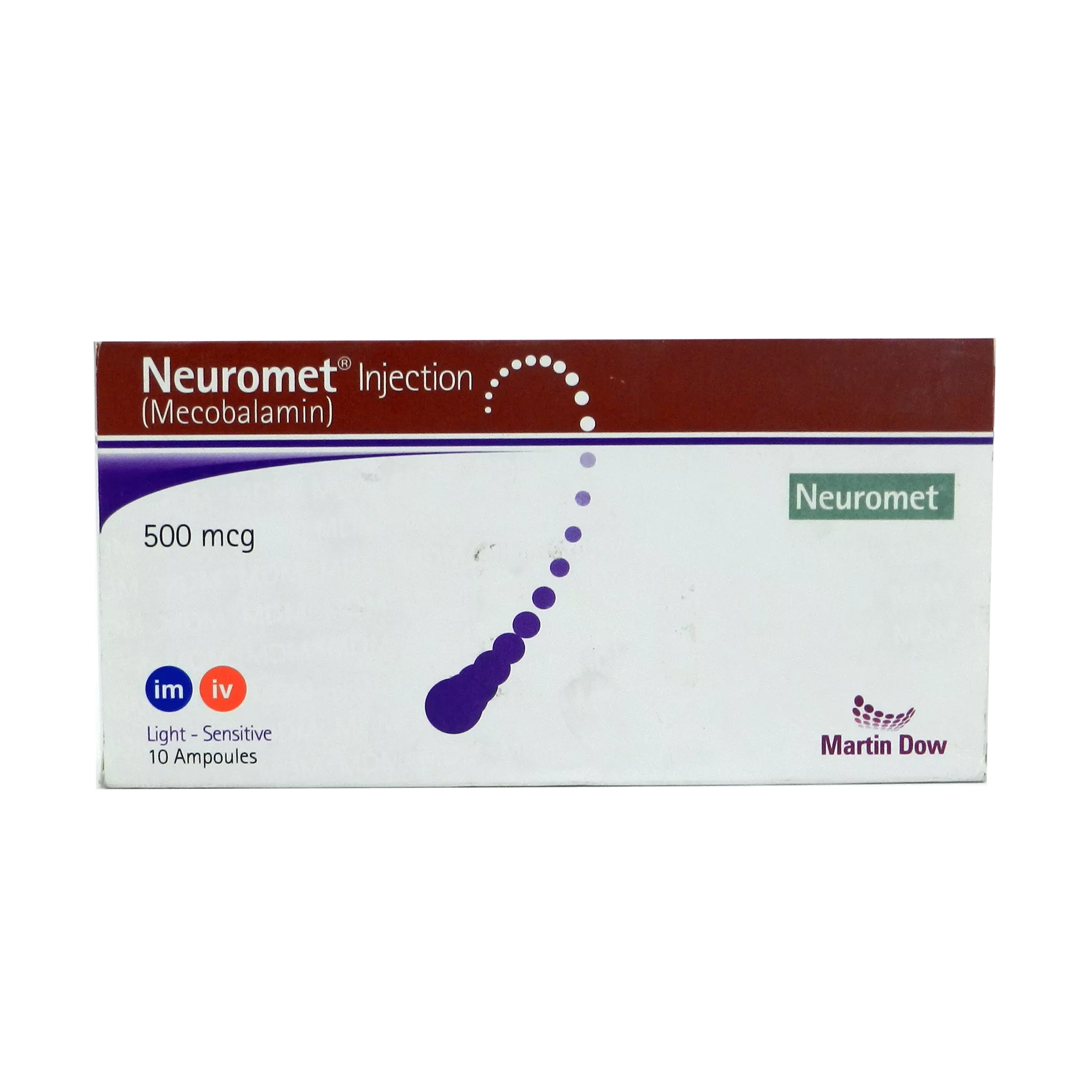 Neuromet Injection 500 mcg 10 Amp is used to relieve the symptoms of nerve damage in the feet and hand.