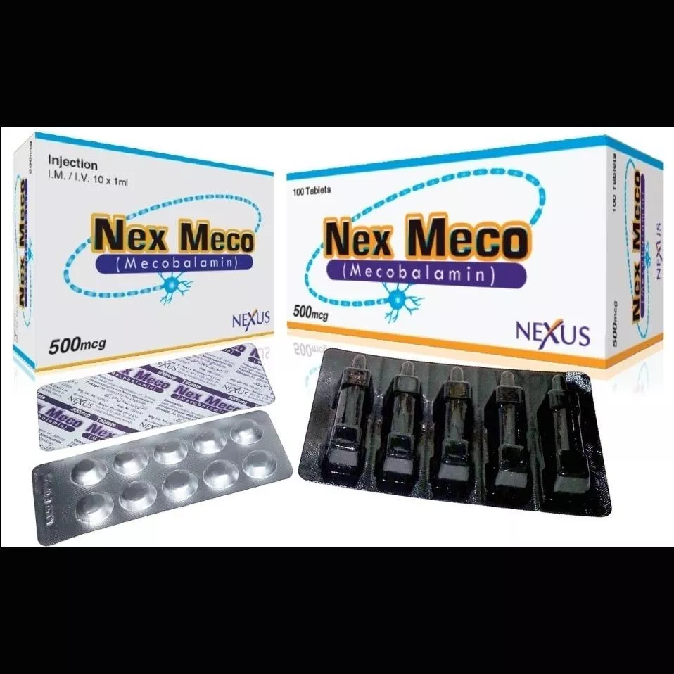 Nex Meco Injection 500 mcg 1 mLx10 Amp is used to relieve the symptoms of nerve damage in the feet and hand.